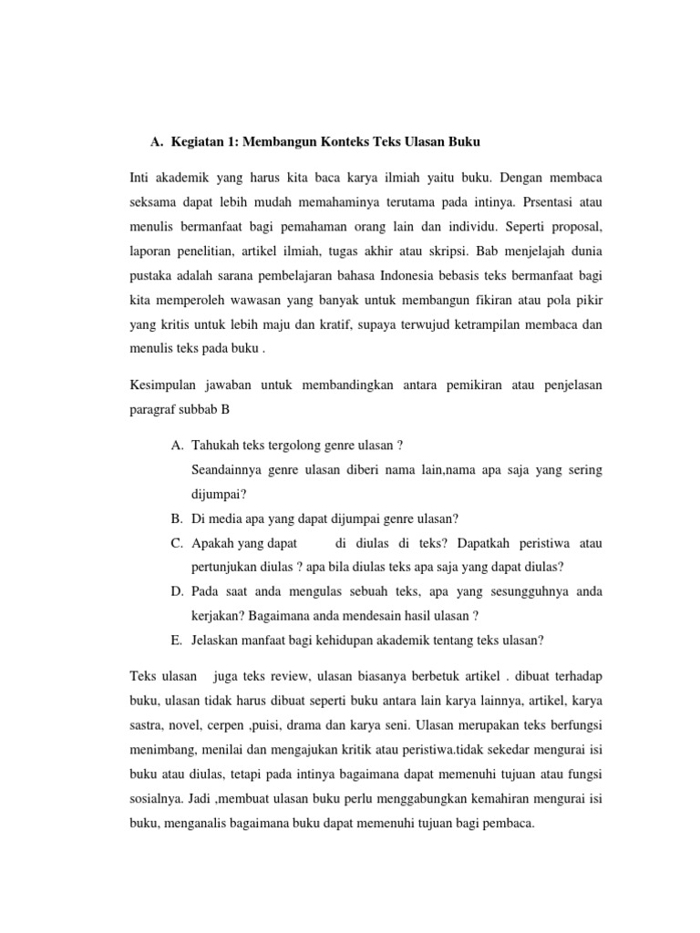 / Manfaat Teks Ulasan / Contoh Teks Ulasan Buku Akademik Docx Contoh Teks Ulasan Buku Akademik Teks 1 Identitas Judul Penulis Penerbit Cetakan Tahun Tebal Bahasa Khasiat Dan Course Hero